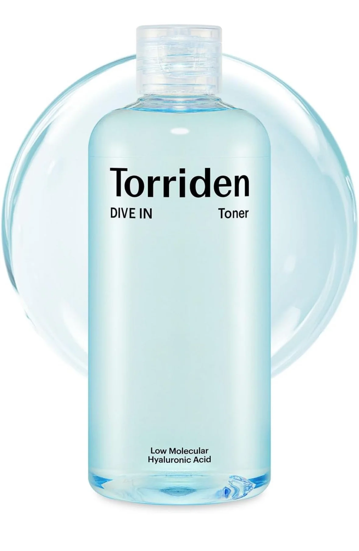 Torriden Dive-In Toner hydrates and refreshes skin with botanical extracts. It balances pH, soothes, and preps all skin types for better product absorption, leaving skin soft and revitalized.